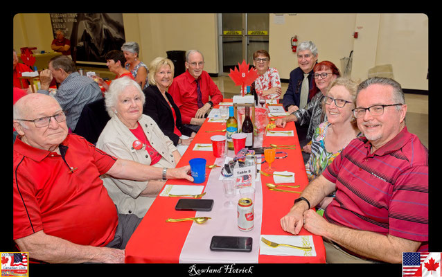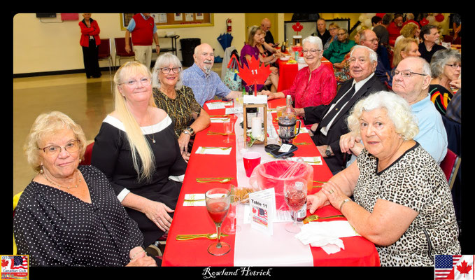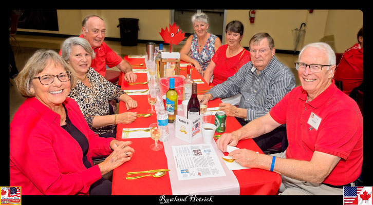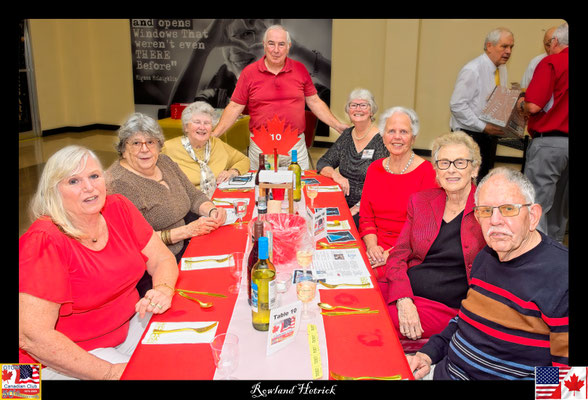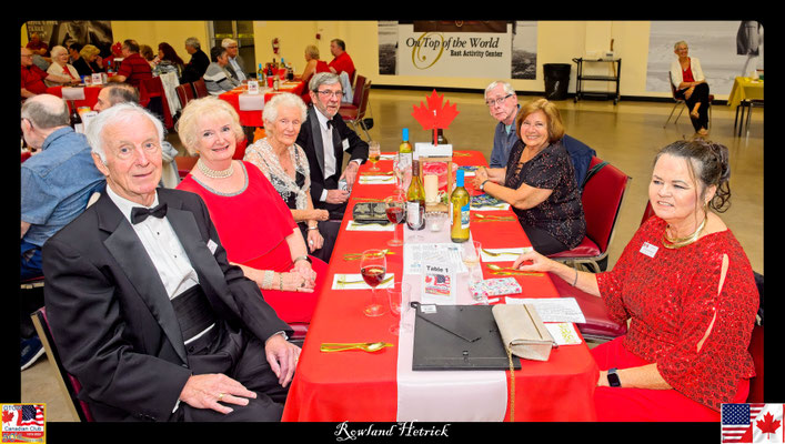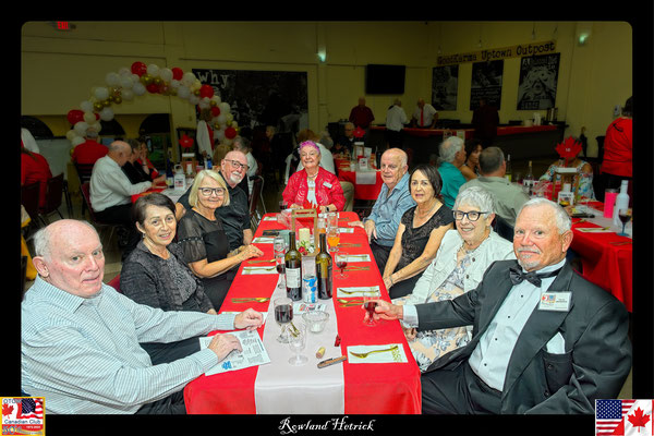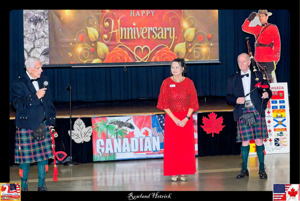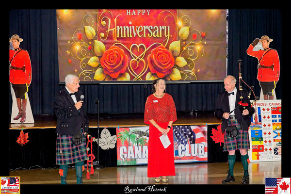 169 people enjoyed a wonderful 50th Dinner-Dance party! Our 50th Golden Anniversary theme was decorated with red, white and gold, plus lots of glitter for an enjoyable celebration of the Club's longevity with our diverse membership on a memorable evening on February 19, 2025! Six Past Presidents and five spouses were adorned with corsages and boutonnieres by Harry and Barb Morrison prior to being piped into the EAC Auditorium to “Scotland the Brave” by bag pipers, club member Raymond Willis and Neil Forbes, from Toronto, Ontario at the 50th Anniversary February 19th.